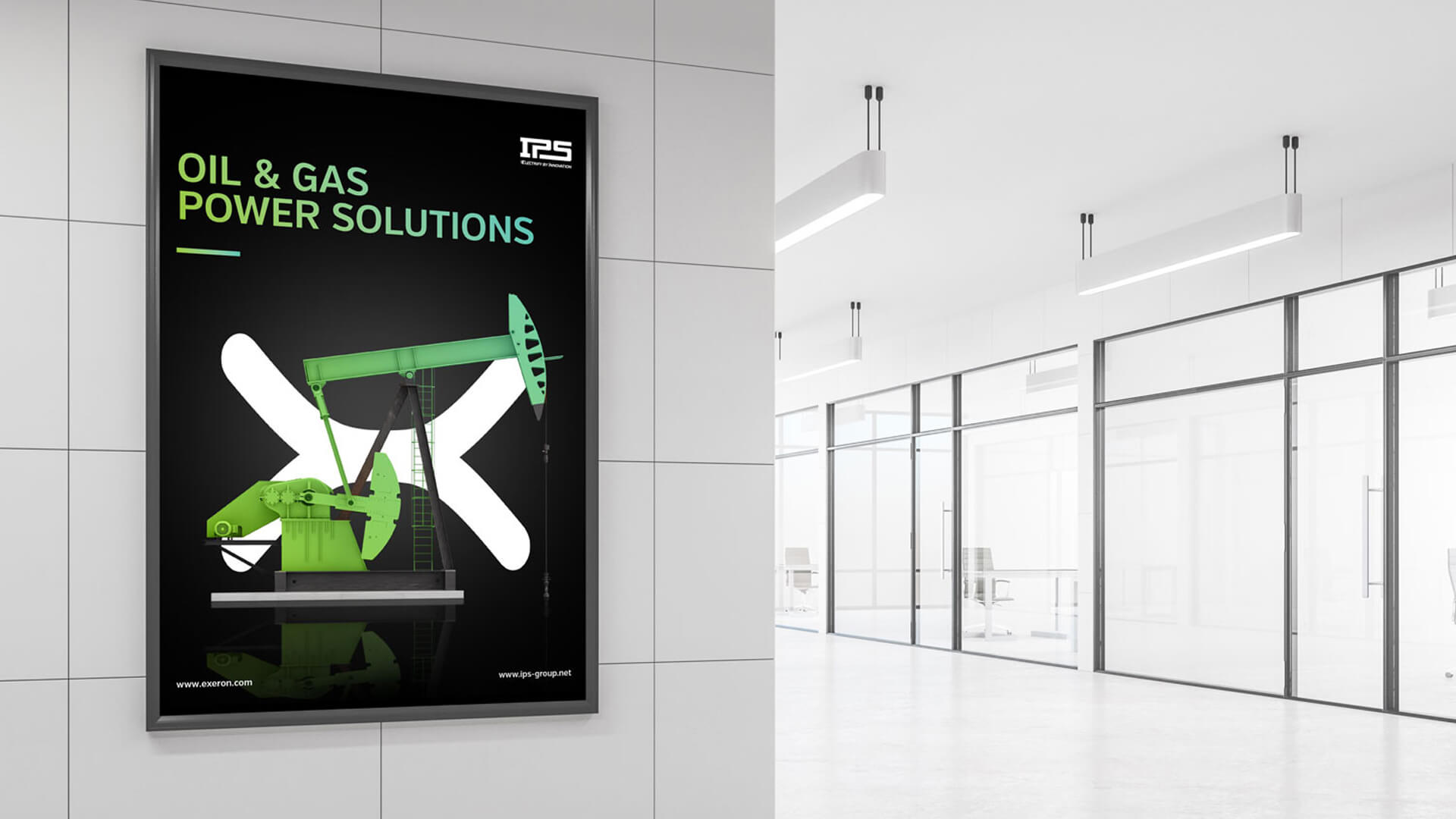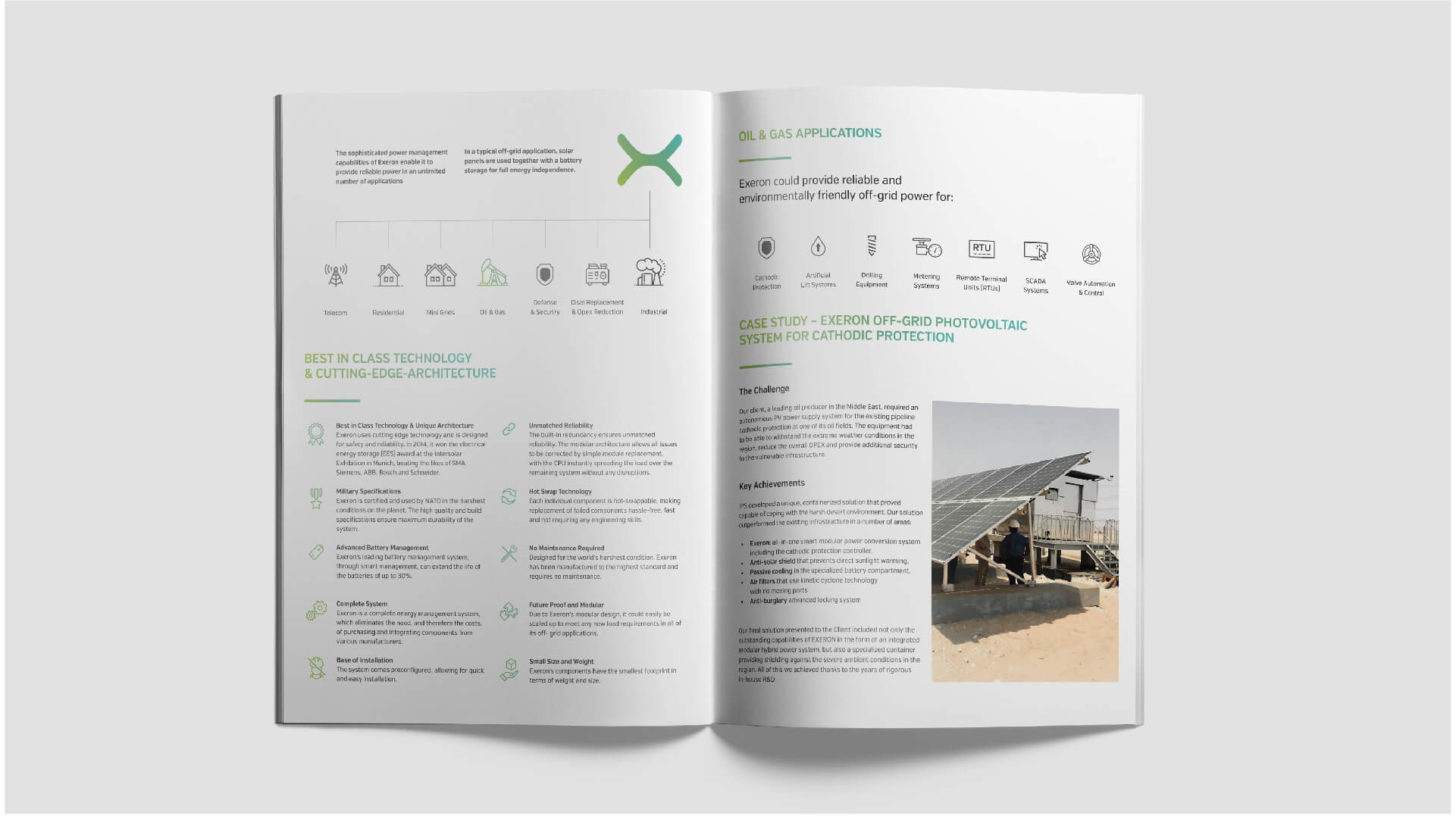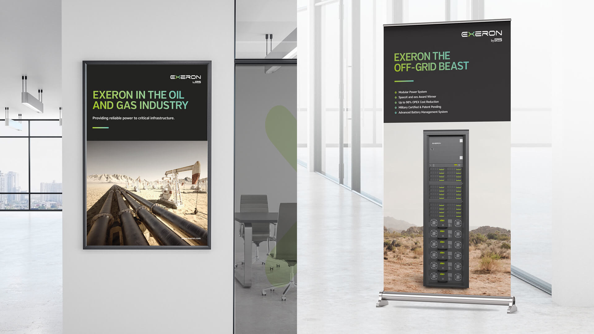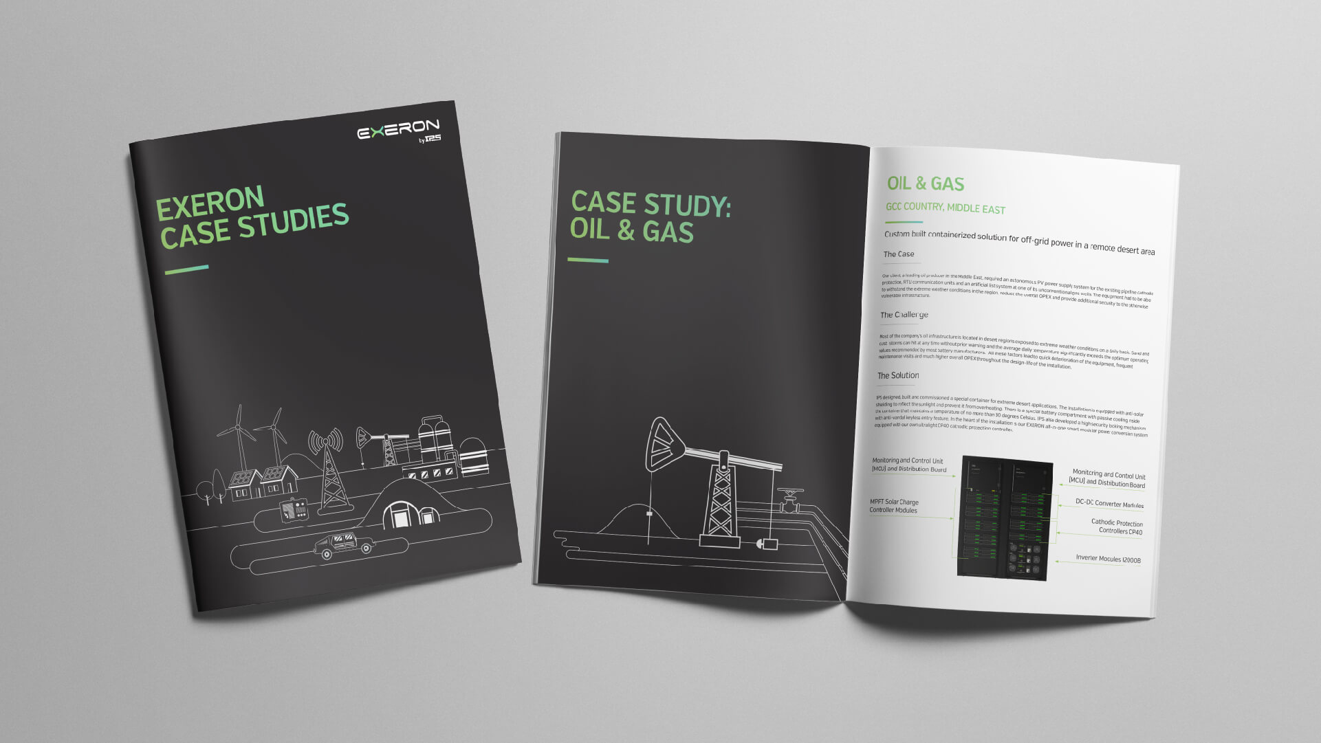 Exeron is the most innovative project of International Power Supply (IPS). EXERON is a power system consisting of solar panels, wind turbines, diesel generators and batteries. The whole system is automatically controlled by a computer so that each element can be exploited in the most efficient way. In 2014, the system was recognized with the international award for innovation in Germany. Thereafter, the interest in the system increased. The company management believes that the EXERON system is the leading product in their business. They have contacted us with a request to create a corporate identity and promotional materials for their product.
